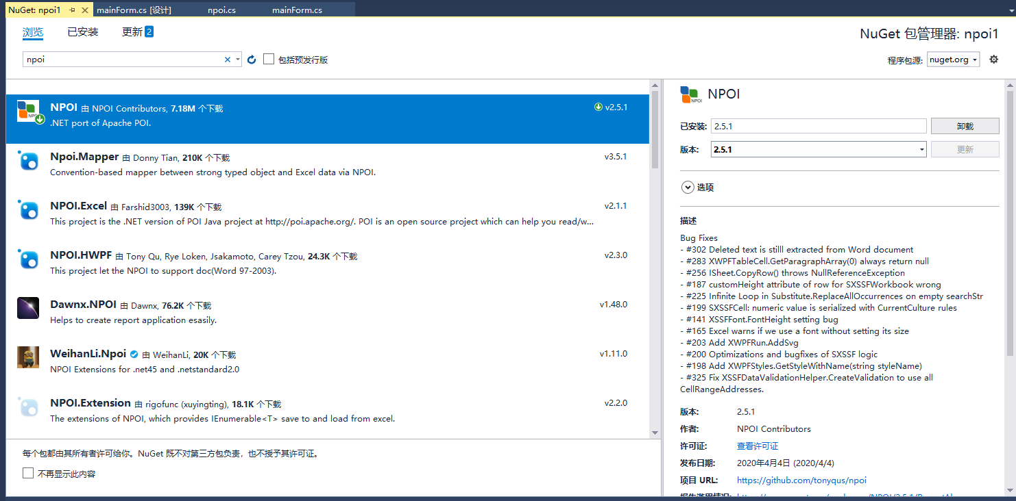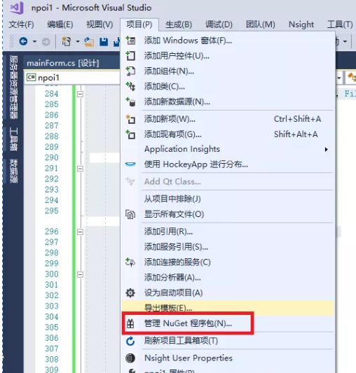 npoi引用:第一步:项目-->>管理Nuget程序包