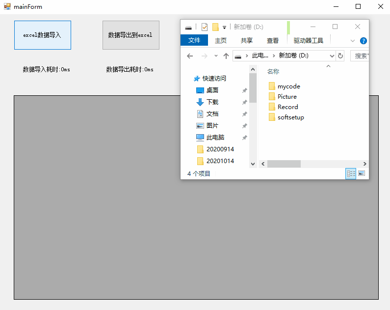 using System;using System.Data;using System.Diagnostics;using System.Windows.Forms;namespace npoi1{ public partial class mainForm : Form { public mainForm() { InitializeComponent(); } private void Form1_Load(object sender, EventArgs e) { } private void button1_Click(object sender, EventArgs e) { Stopwatch sw = new Stopwatch(); sw.Start(); //dataGridView1.DataSource = NPOIExcel.ExcelToDataTable("电脑统计表.xlsx", true);//方式1 dataGridView1.DataSource = NPOIExcel.ExcelToTable("电脑统计表.xlsx");//方式2 sw.Stop(); label1.Text = sw.ElapsedMilliseconds.ToString("数据导入耗时:" + "0000"+"ms"); MessageBox.Show("数据导入完成"); } private void dataGridView1_RowsAdded(object sender, DataGridViewRowsAddedEventArgs e) { for (int i = 0; i < dataGridView1.Rows.Count; i++) this.dataGridView1.Rows[i].HeaderCell.Value = (i + 1).ToString(); } private void button2_Click(object sender, EventArgs e) { Stopwatch sw = new Stopwatch(); sw.Start(); DataTable dt = (dataGridView1.DataSource as DataTable); //NPOIExcel.DataTableToExcel(dt, "d:\\111.xlsx");//方式1 NPOIExcel.TableToExcel(dt, "d:\\111.xlsx");//方式2 sw.Stop(); label2.Text = sw.ElapsedMilliseconds.ToString("数据导出耗时:" + "0000" + "ms"); MessageBox.Show("数据导出完成"); } }}npoi.cs