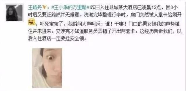 女明星王珞丹在微博上爆料,在住一个5星级的酒店时,房间门突然被人用卡给刷开了,还好没有出什么问题。就连女明星都难以逃过被人强行闯门(还是被卡刷开的,刺激不?),我们一般的普通人更要多注意了。