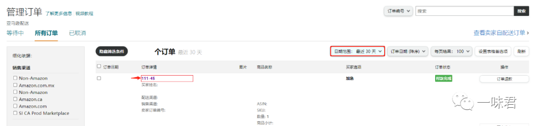 根据需要,筛选请求评论的【订单时间】,再点击【订单编号】
