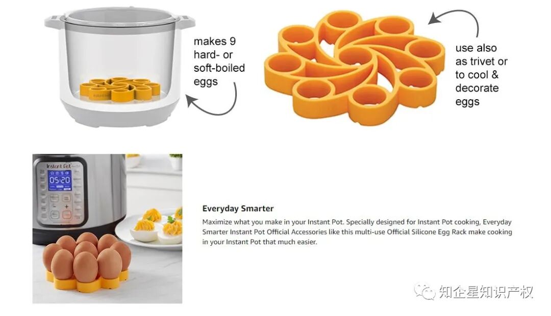 这款产品在美亚站热度很高,产品的核心设计点在于:类似旋转花瓣的造型。既可以作为鸡蛋托盘储存使用,也可以用作鸡蛋蒸架,非常简洁实用。