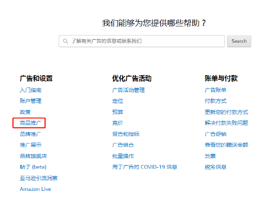 首先进入帮助>获得支持>广告和品牌旗舰店,在广告和设置一栏,点击商品推广,然后会看到对广告进行故障排除,对的,就是这里,不要犹豫,点进去。