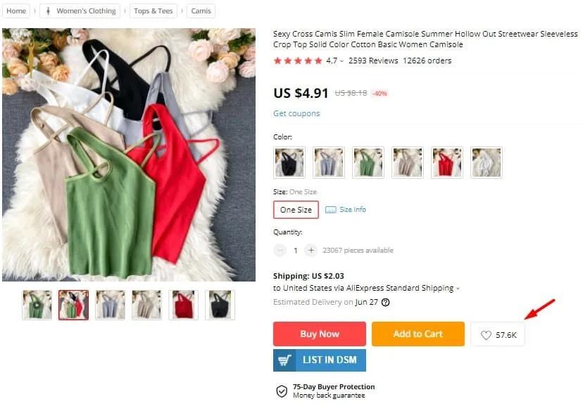 除比基尼之外,吊带上衣也是今年会流行的夏季单品,仅一款普通的紧身吊带就能在AliExpress上获得 57,5 k 用户的喜欢。