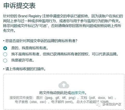 二、提供申诉品牌的商标信息。