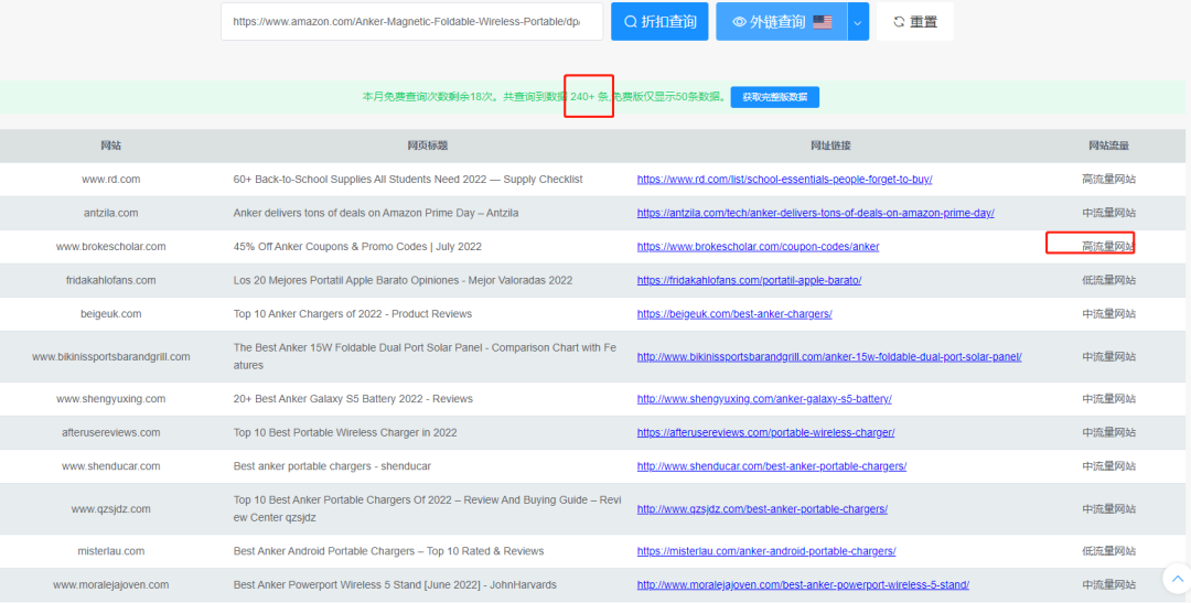 比如这个通过站外智汇搜索链接,可以看到有240+条外链,或许有些网站会自己专门去亚马逊门店选一些不错的产品发到网站,但是也有的是卖家自己联系后合作的。