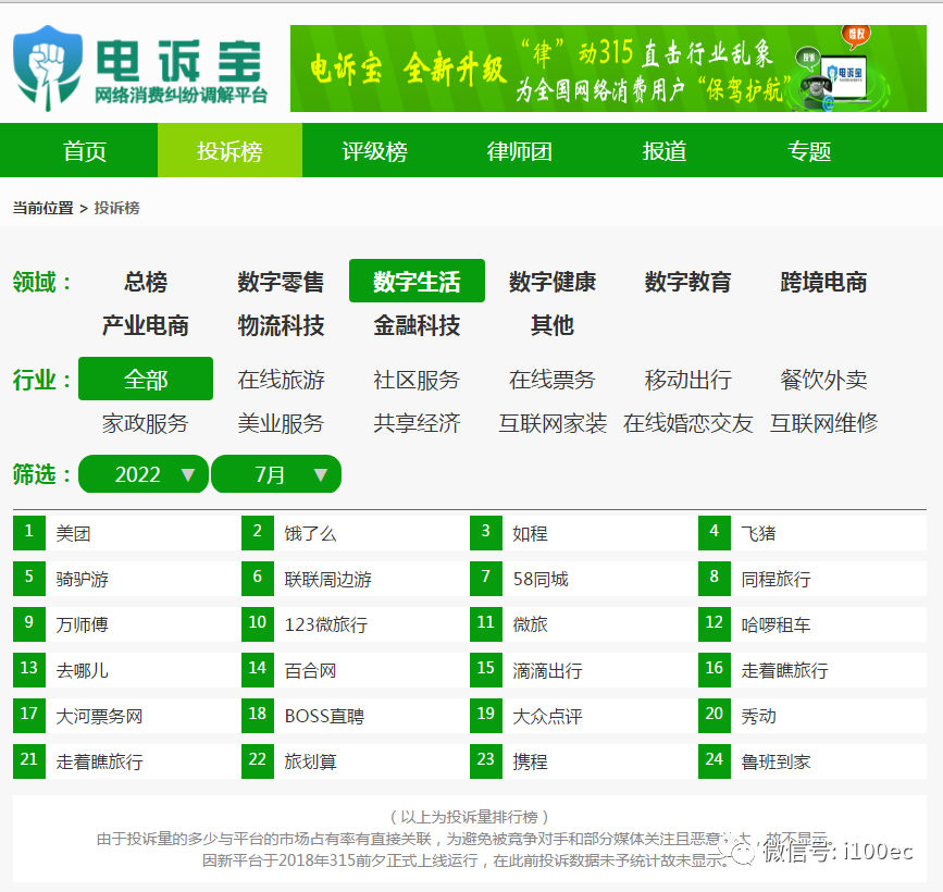 2022年8月4日,依据国内知名网络消费纠纷调解平台"电诉宝"(315.100EC.CN)2022年7月份受理的全国135家互联网消费平台纠纷大量案例数据,我国"一带一路"TOP10影响力社会智库网经社电子商务研究中心发布了《2022年7月中国电子商务用户体验与投诉数据报告》。(报告全文下载:)