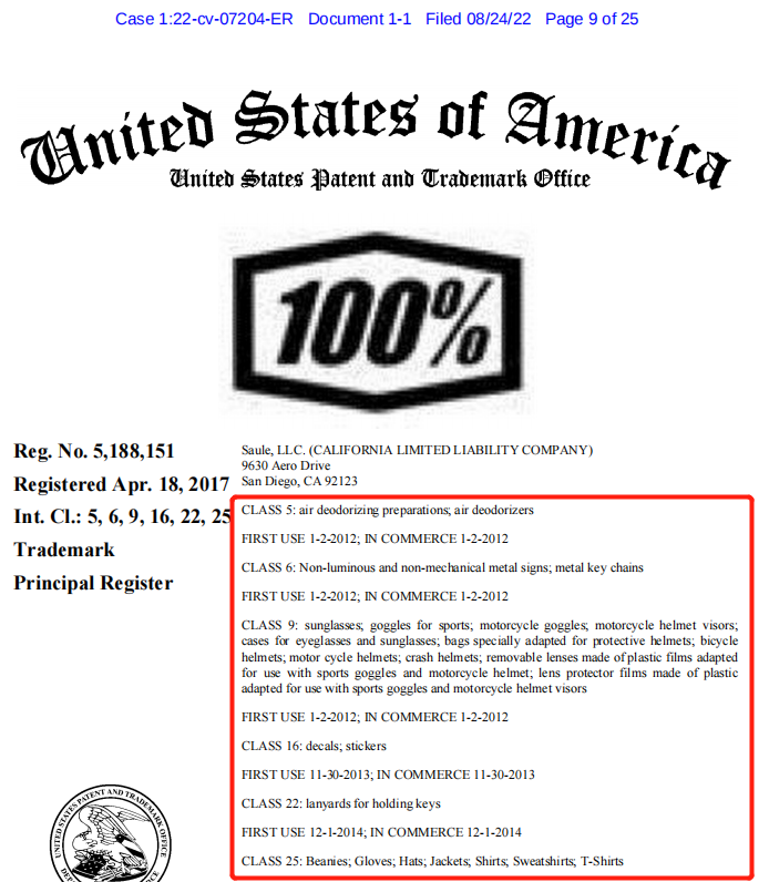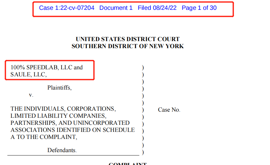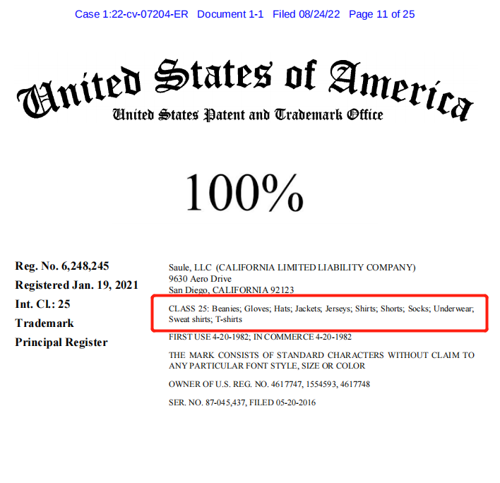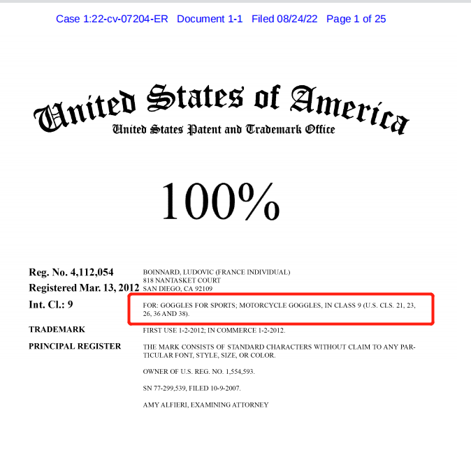 经过一番查证,100%这个商标早在18年就有维权记录,最新的平台起诉案件于22年8月24号发起,案件编号22-cv-7204。