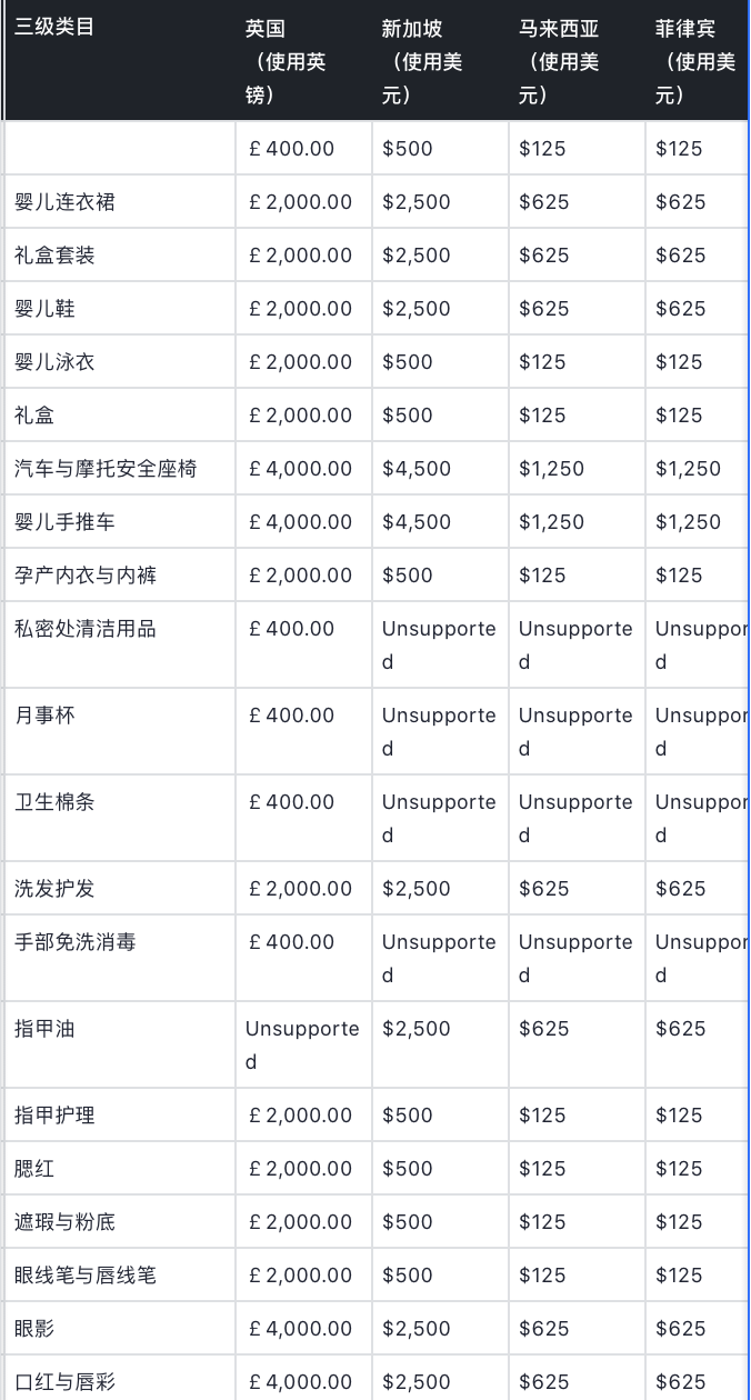 •如果卖家目前的保证金余额不符合特定类目的保证金余额要求,卖家将无法在该类目中发布商品。