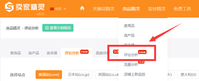 我们打开卖家精灵的"评论分析"功能,输入你想要对标的top竞品Asin码。