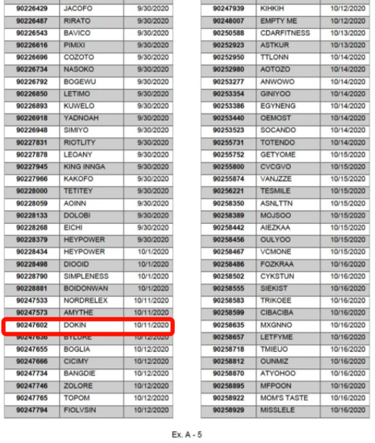 据了解,美国专利商标局披露的涉案商标达到2200+多个,但只是深圳Haiyi提交的美国商标的一部分。现在公布的名单中找到了"Dokin"品牌,显示提交时间是2020年10月11日。
