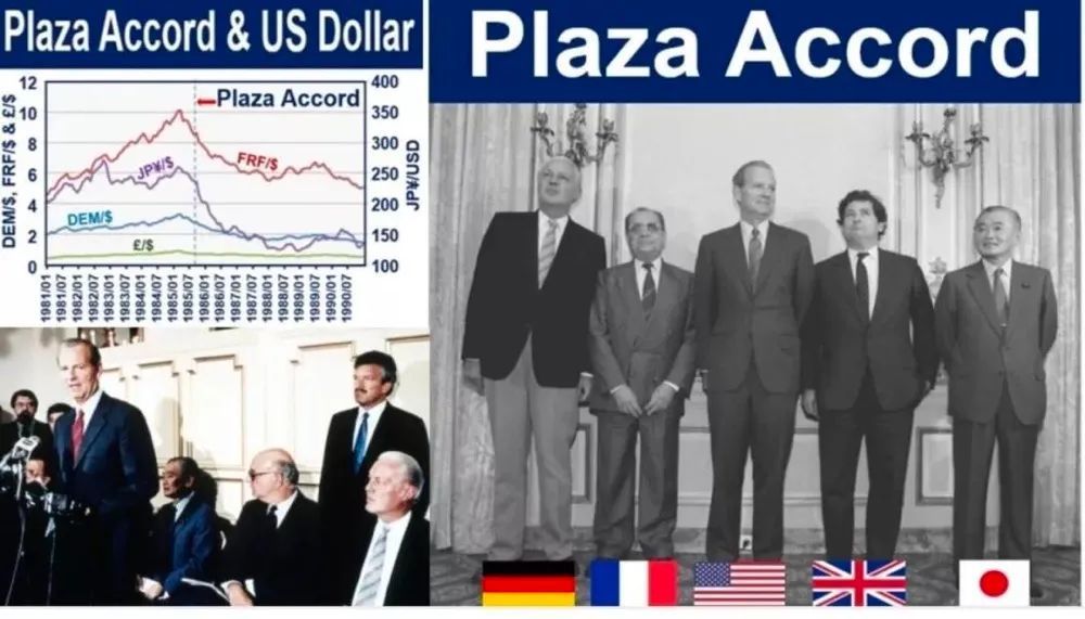 "1985年春,美国参议院将日本列为"不公正贸易国",之后的两个月里,美国媒体开始对日本口诛笔伐,参众两院不断提出上百个报复日本的方案。1985年9月22日,美国、日本、联邦德国、法国以及英国的财政部长和中央银行行长,在纽约广场饭店开了一个会,一起商量如何操纵汇率,让美元贬值、日元升值。这就是著名的《广场协议》。"