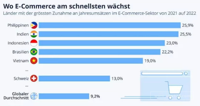 就欧洲地区而言,瑞士电商市场的增速排名第一。园林用品、冰箱和药品是瑞士电商市场的主要收入来源。