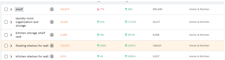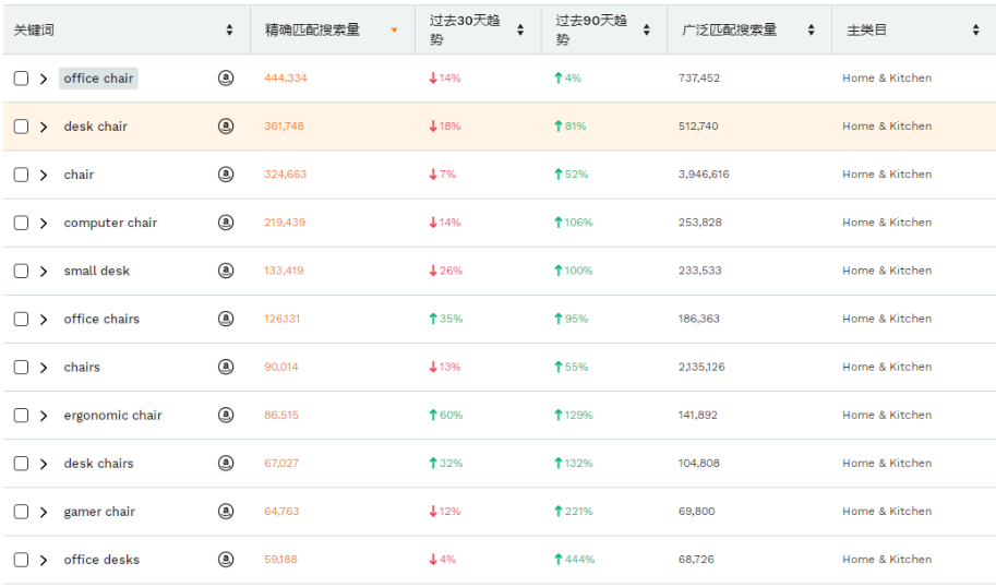 图为亚马逊相关品类的近期数据情况。