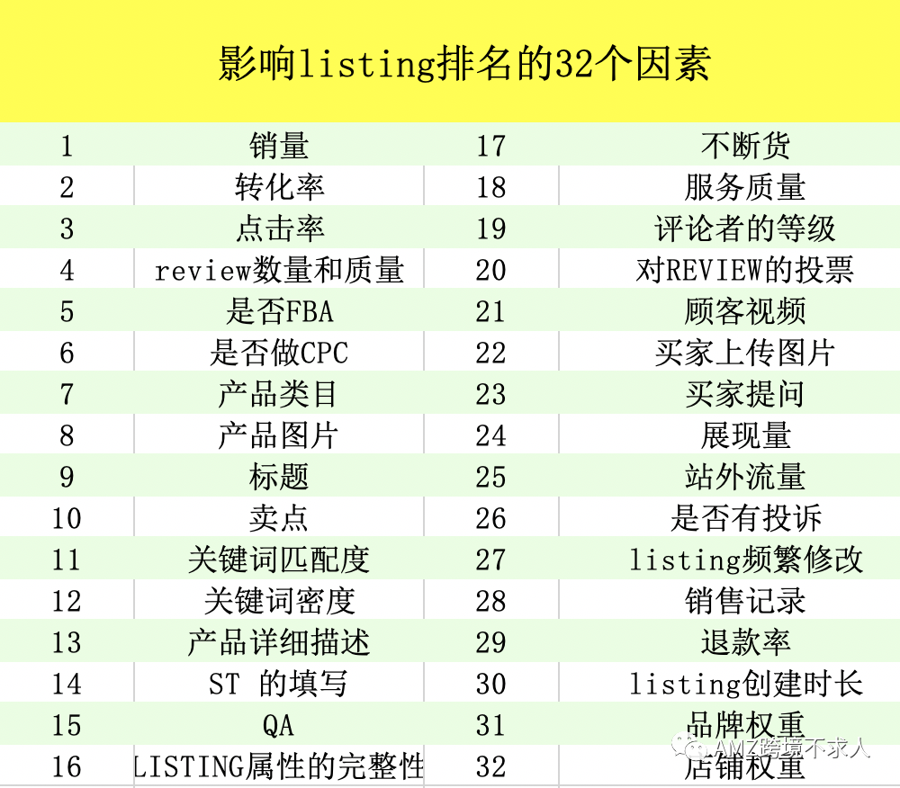 那么影响产品排名的因素总共包括哪些呢?下面罗列出影响排名的32个因素: