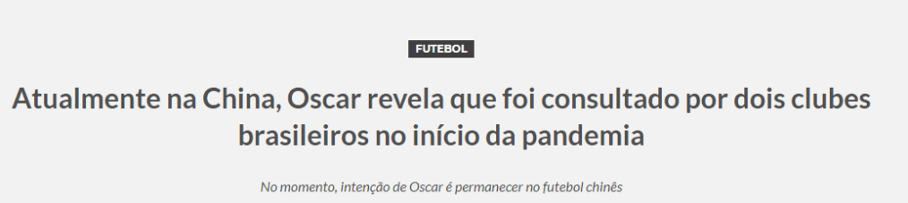 今年7月,在接受CGTN专访时,上海上港外援奥斯卡表示如果规则改变,他愿意归化为中国队效力,"如果中国国家队需要一个好的中场的话,我可以帮助他们。我喜欢中国,归化为中国效力的球员也都能拿出好表现。"