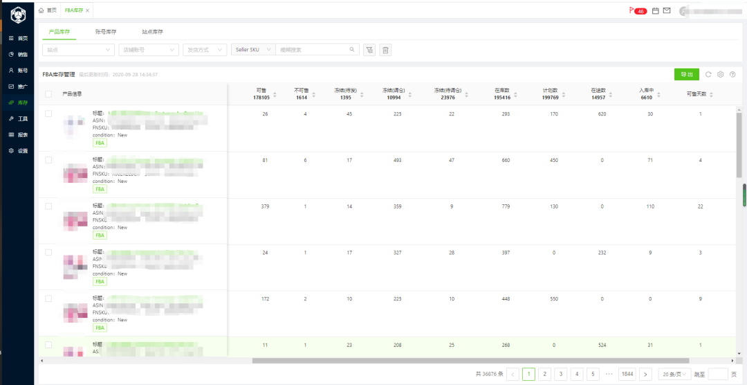 (图为产品各状态库存数量页面)