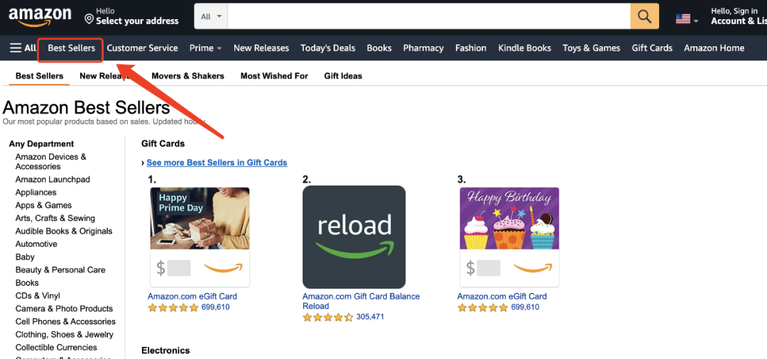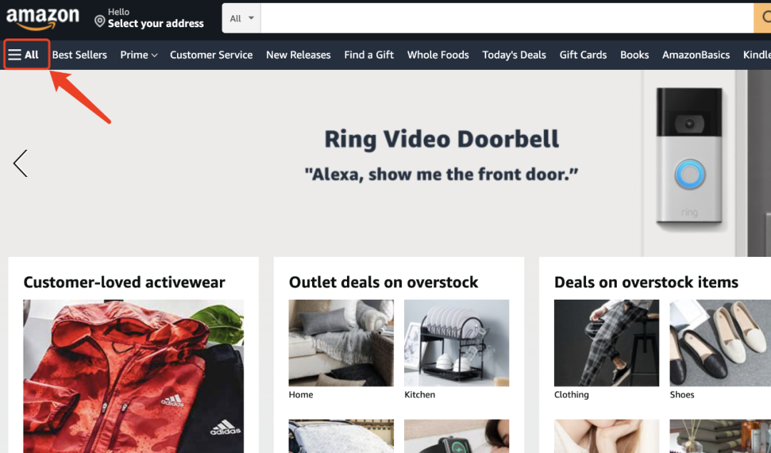 亚马逊上的品类划分是很细的,所以你可以去上面看看有什么品类是你感兴趣的,查看的方式也很简单。(1) 进入亚马逊,点击亚马逊左边的All 按钮