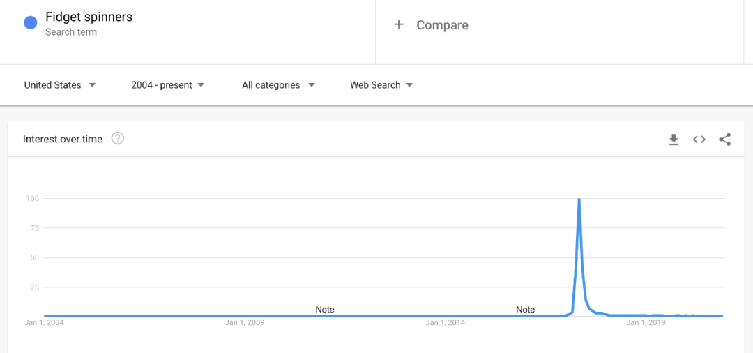 同时也要尽量避免选那种只是昙花一现的垂直细分领域,那种细分领域除非你消息特别灵通能进去捞一笔,否则大部分时候都是竹篮打水一场空,比如:指尖陀螺 Fidget spinners