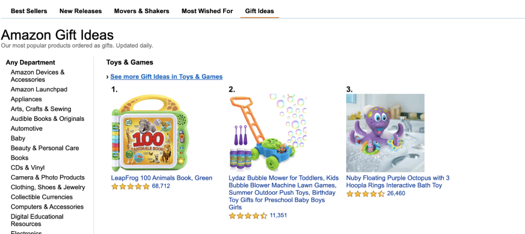 亚马逊作为最大的电商平台之一,上面肯定有很多可以看的榜单,作选品参考的。Amazon Best Sellers 畅销榜「2」eBay