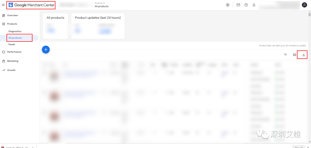 首先在GMC后台,切换到All Products页面,点击右边栏【下载】按钮,