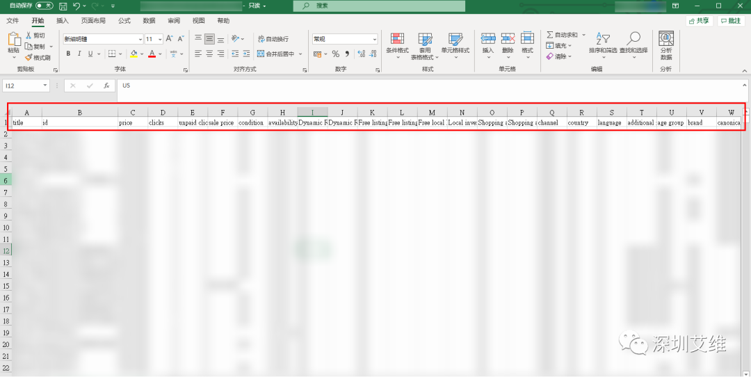 会得到一份products_XXXX.tsv的文档,打开相关文档,在文档上保留可进行产品唯一性定位的产品属性栏,推荐选用保留"id"属性,将其他属性内容删除,同时将对应的产品GTIN码进行补充。